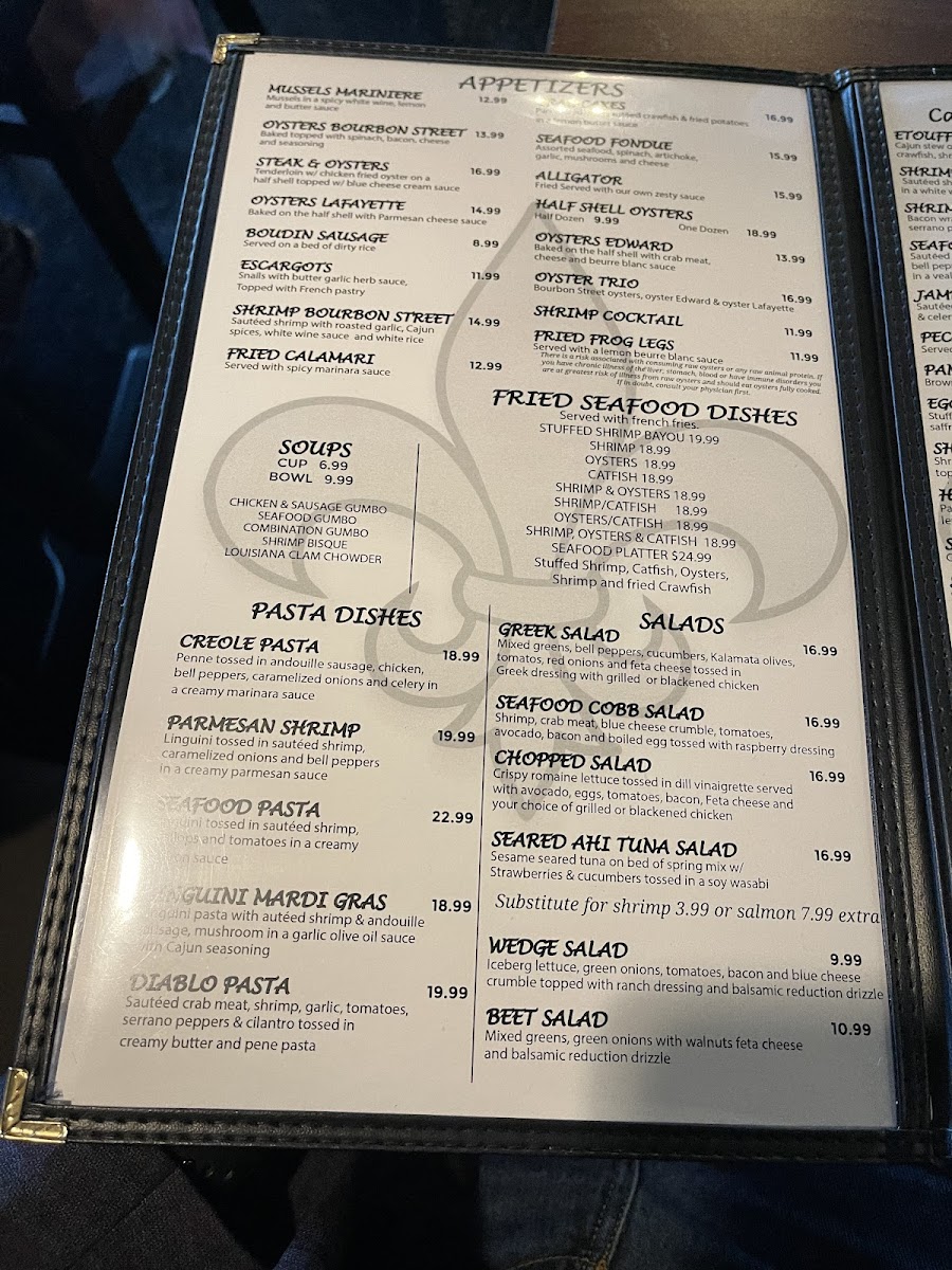 Bourbon Street Oysters, Oyster Edward, & Oyster Lafayette.